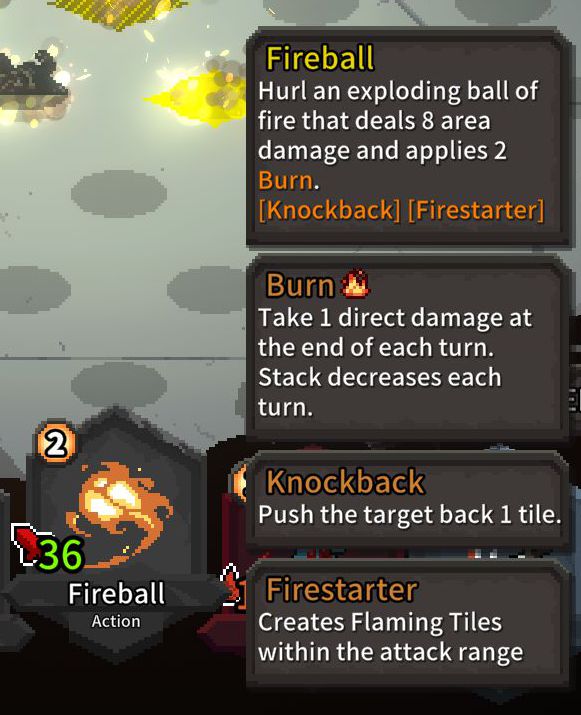 遠距離+ノックバック+範囲攻撃+バーンと