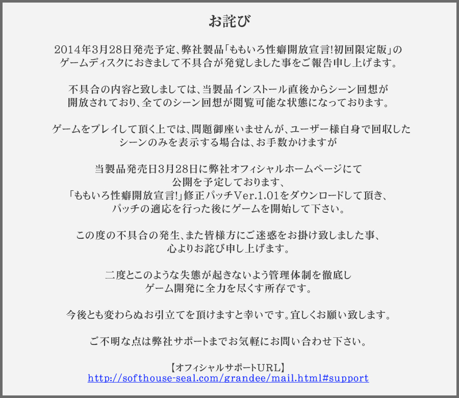 自己責任に委ねた公式の仕様にしたほうがいいんじゃないかって思うことも多くなった。主にゆずソフト辺り。